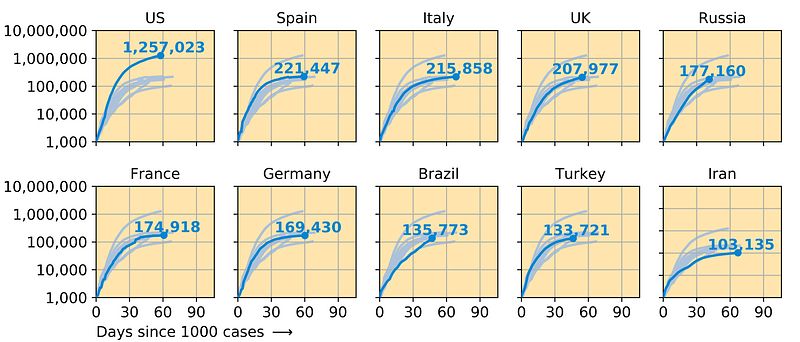 Countries with more than 100,000 confirmed cases of COVID-19 at the beginning of the pandemic.